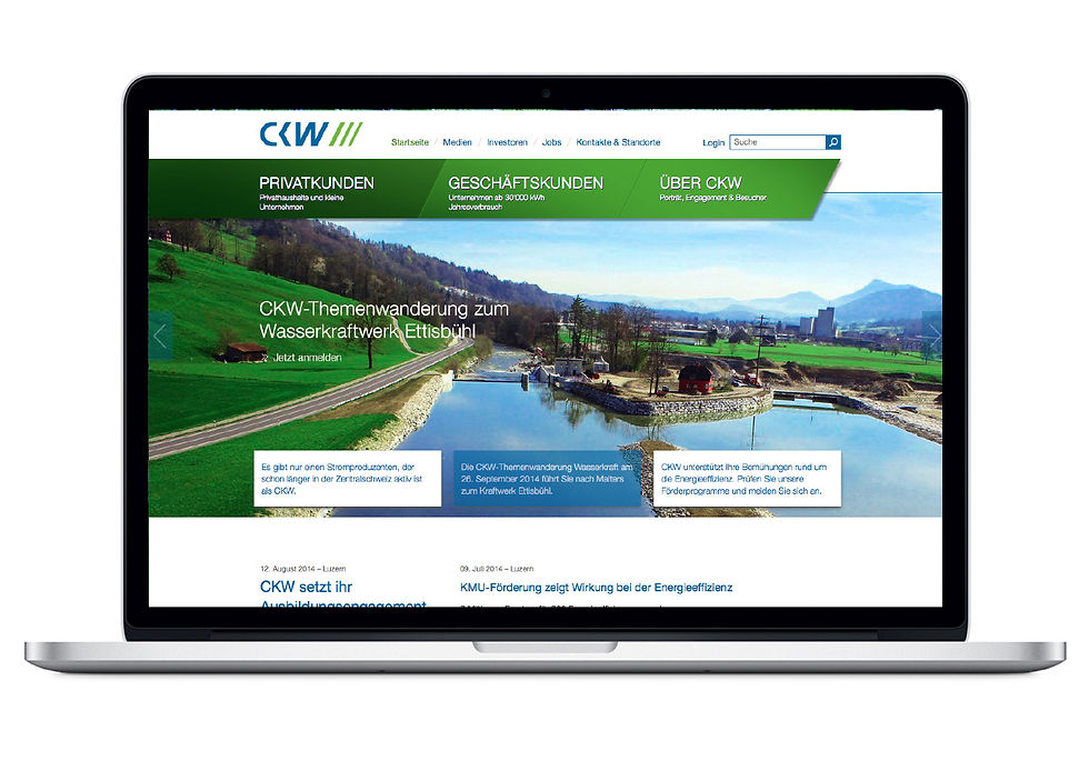 Ein neuer Gesamtauftritt für die Centralschweizerischen Kraftwerke. Für die führende Energiedienstleisterin des Kantons Luzern wurde im Rahmen der Einführung neuer Produkte und Dienstleistungen für Privat- und Geschäftskunden verschiedene Massnahmen im Bereich Brand Management, Brand Design, Werbung und PR entwickelt. Neben der Beratung in der Markenführung, der Entwicklung von Namings und einem Redesign gehörten dazu u.a. die Konzeption einer Website, Broschüren, Fahrzeug- und Elektrotankstellenbeschriftung.